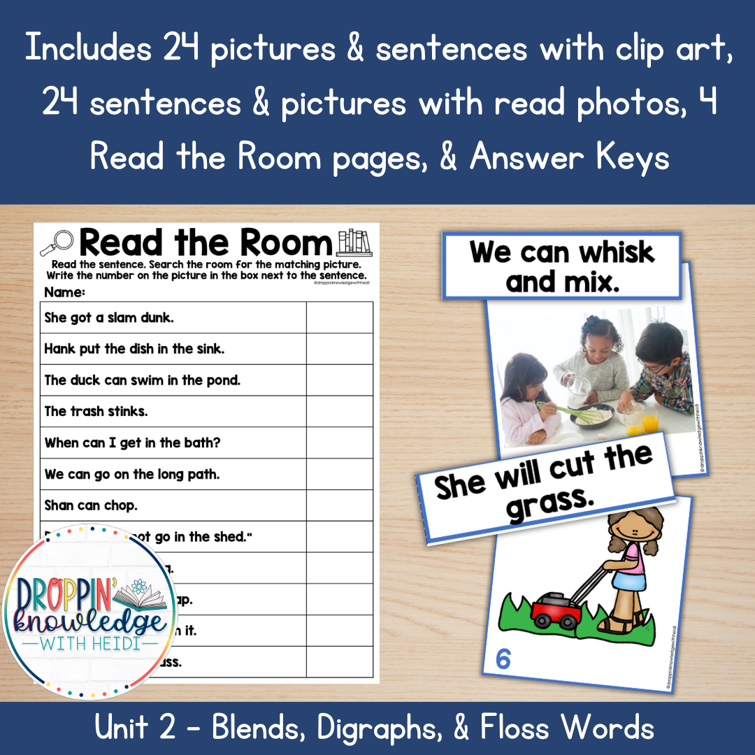 These cards have a BLUE outline to indicate they are from Unit 2 of my decodable units which includes blends & digraphs (and floss words).