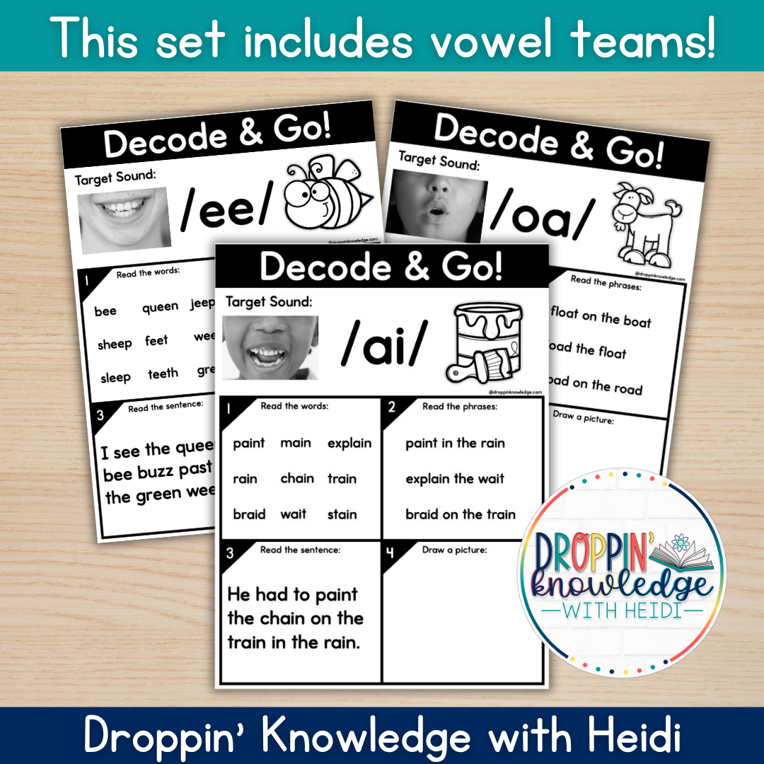 Decode & Go! Quick Skill Practice – Vowel Teams Phonics Decodables