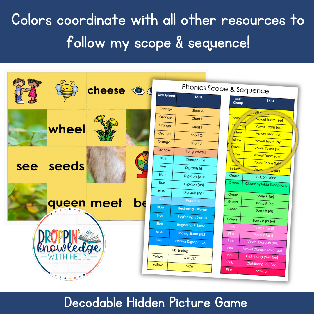 Hidden Picture Decoding Game BUNDLE – No Prep Slides 30+ Phonics Skills