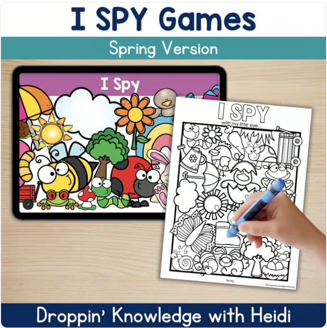 I spy is one of my favorite games for working on foundational reading skills. There are so many ways to play! Here are some of my favorites: