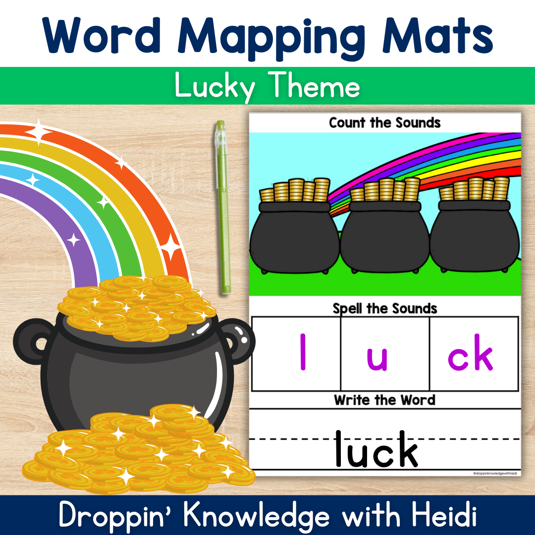 Have you made the change from memorizing words to mapping words? Sound boxes are a great tool but…. if I’m honest, they can get a little boring! So, I have created these LUCKY themed Mapping Mats as a fun twist!