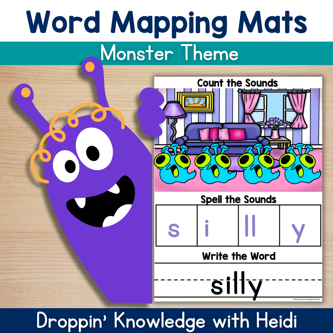 Orthographic Mapping Mats Funny Monster Theme (Sound Boxes) Phonics Sight Words
