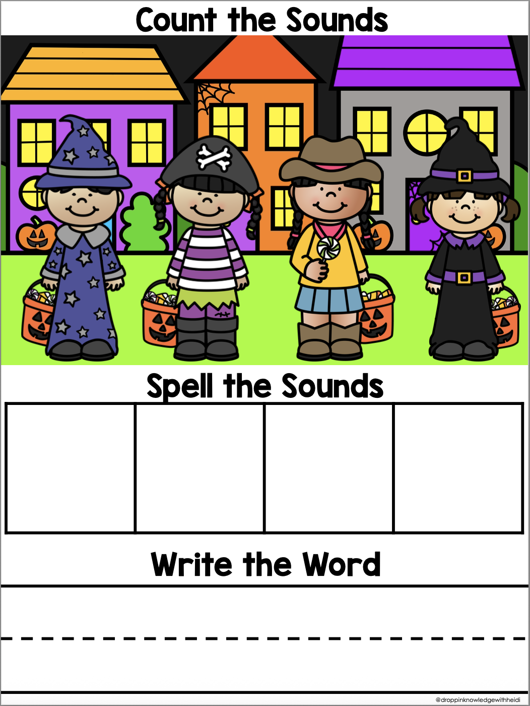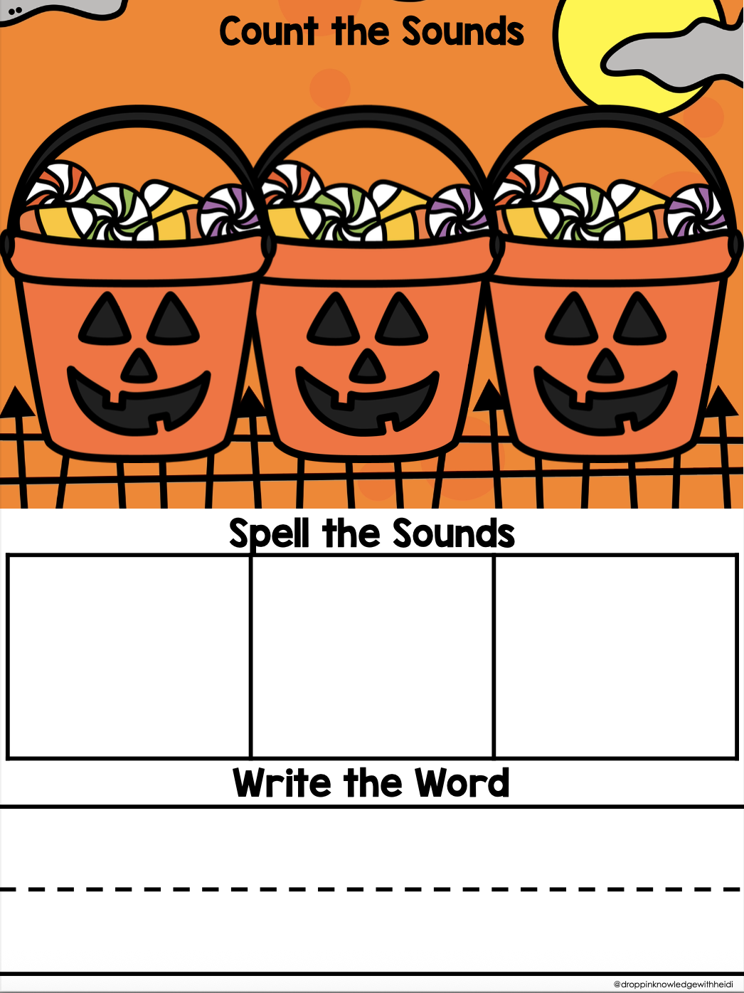 Orthographic Mapping Word Mats Halloween Theme (Sound Boxes) Phonics Sight Words
