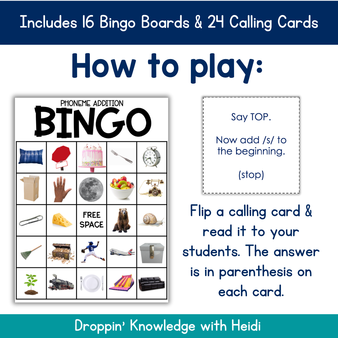 Phonemic Awareness for OLDER Kids – Phoneme Addition BINGO Game