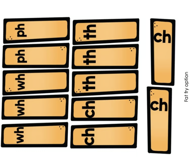 If you are working on digraphs and want kids to know which 2 letters represent the sound, you can use the fries with separate letters on them. If you are reviewing digraphs and want to focus on word mapping, you may choose to use the fat fry option.