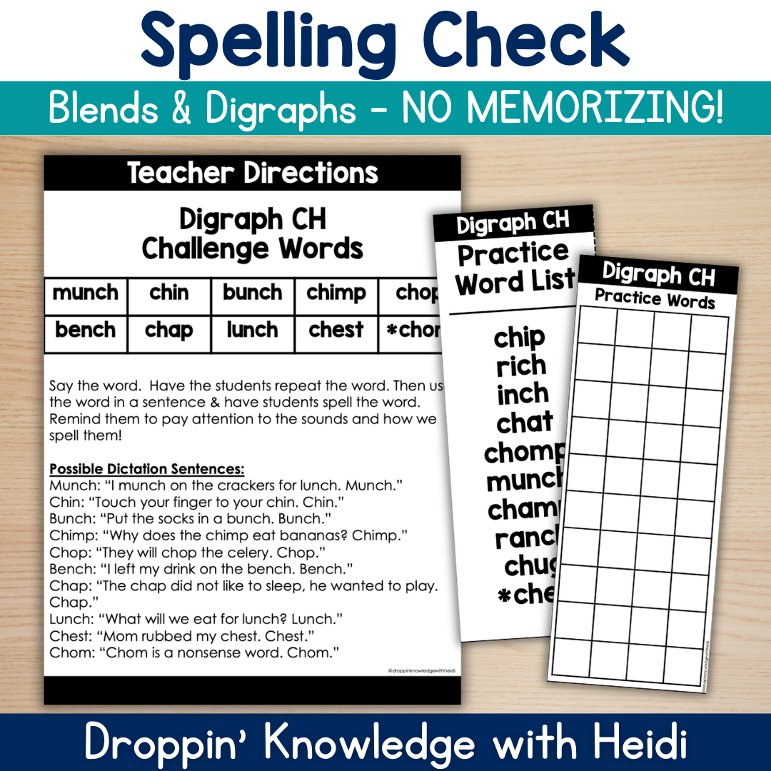 •CH, CK, SH, TH, PH & WH, NG, NK & Floss Word Practice Words & Challenge Words