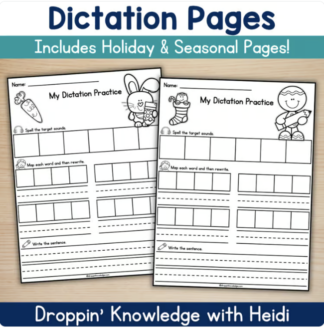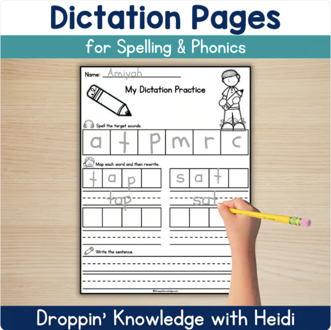 Dictation is an important part of learning to read and spell. Daily dictation can help kids apply the phonics & phonemic awareness skills they have been learning!