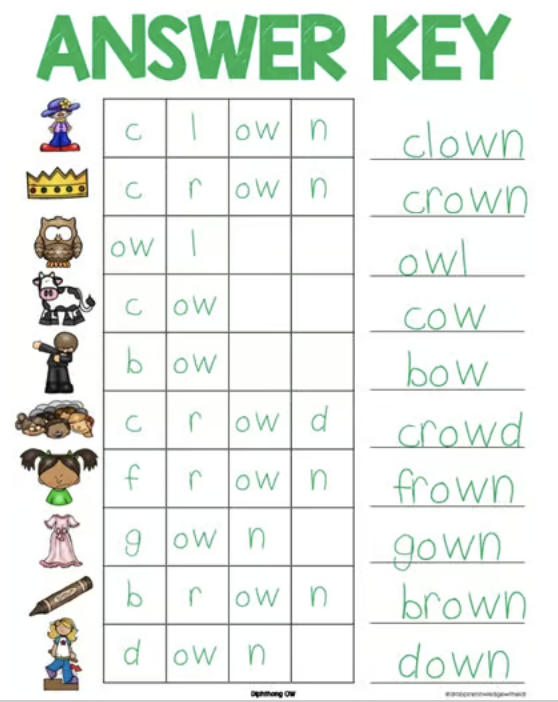 Word Mapping NO PREP Centers – DIPHTHONGS