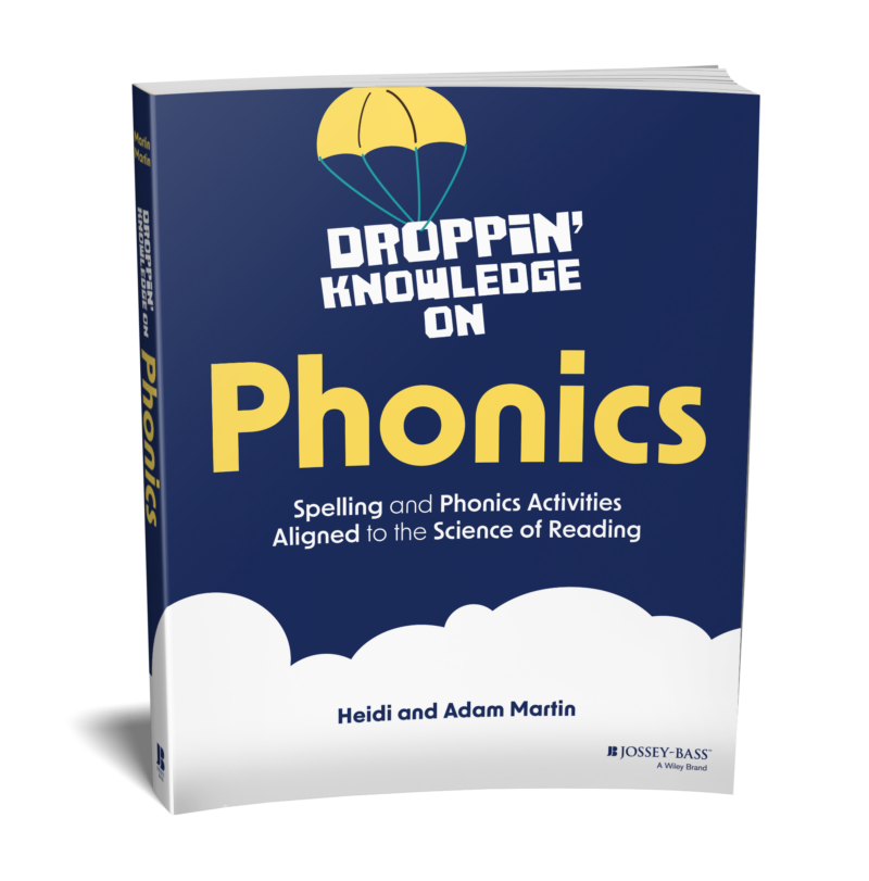 Educators and parents know we are facing a literacy crisis, but few know what to about it. Droppin’ Knowledge on Phonics & Spelling is an action-oriented guide written by experienced educators to bridge the gap between research and practice. Drawing on the latest evidence on how K-8 students learn best, Heidi Martin and Adam Martin have developed reproducible activities, games, and practical tips to bolster phonics and spelling curricula. All the books in the Droppin’ Knowledge series contain ready-to-go resources that you can use within your existing curriculum. These activities are perfect as warm-ups, homework, extra credit assignments, or in-class additions to your lesson plans. Deepen learners’ understanding of important phonics and spelling concepts and give them “quick wins” to increase confidence and activate prior learning.